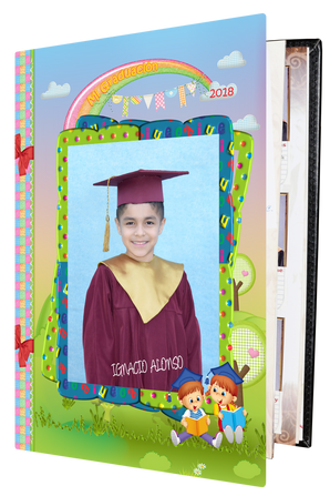 Están elaborados en tapa dura, en la portada tiene la fotografía del alumno con plastificado Mate / Brillo / 3D, según la preferencia del cliente. El contenido es impreso en láser en papel couche cosido y plastificado en brillo. Tamaño A4 y contiene 10 páginas.